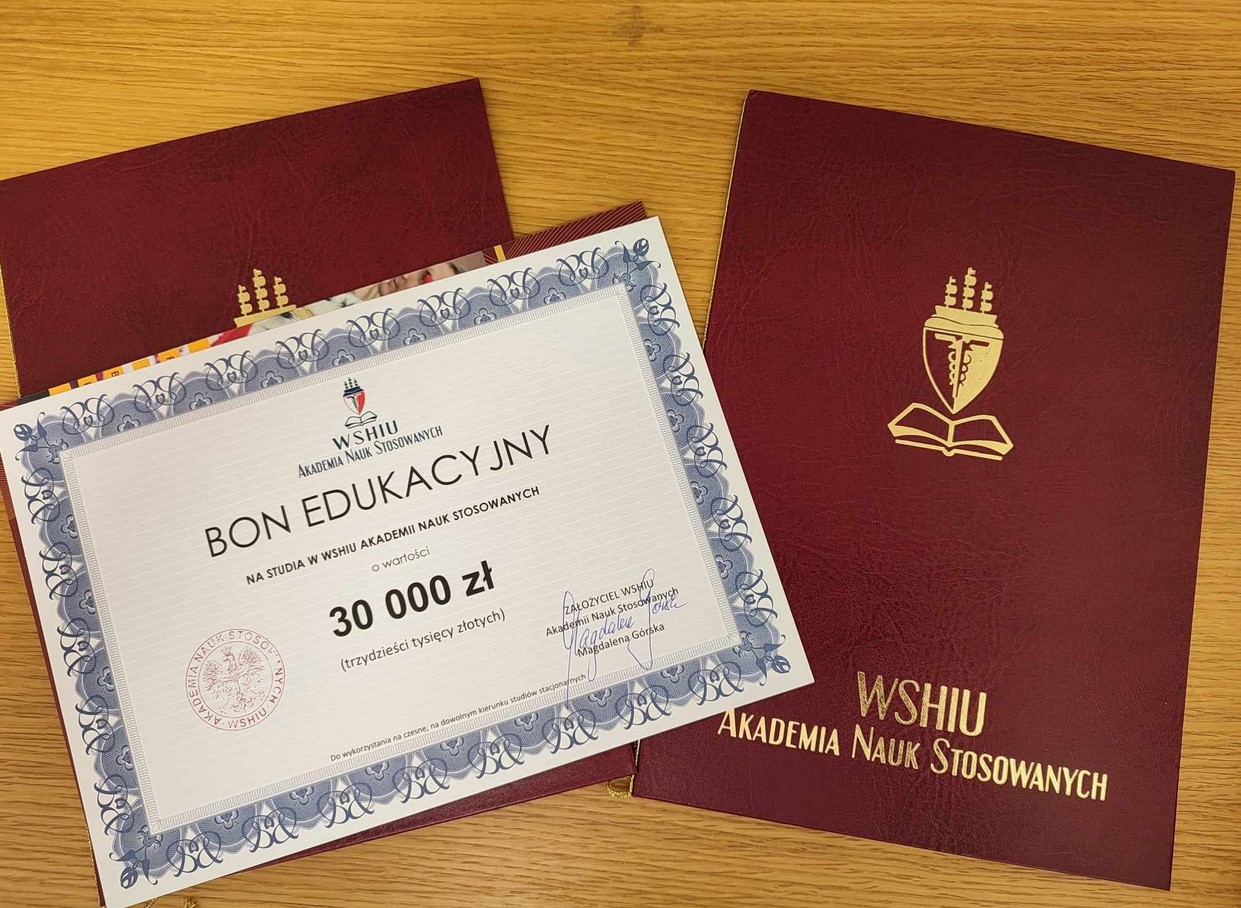 UWAGA MATURZYŚCI!!! Myślicie o swojej przyszłości? Chcecie kontynuować naukę na wyższej uczelni? Mamy dla WAS dobrą wiadomość WSHIU Akademia Nauk Stosowanych / WSHIU University w Poznaniu ufundowała - dla absolwentów naszej szkoły, którzy zdadzą maturę i wyrażą chęć podjęcia studiów na https://wshiu.pl/ - dwa stypendia w kwocie 30000 zł (każde), które umożliwią zdobycie tytułu licencjata.