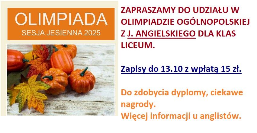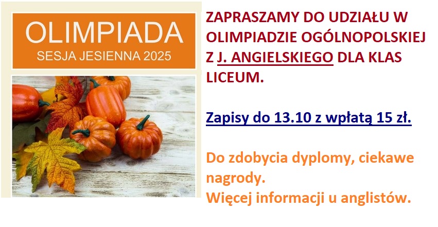 Zgłoszenia przyjmuje pani A. Small do 20 października.