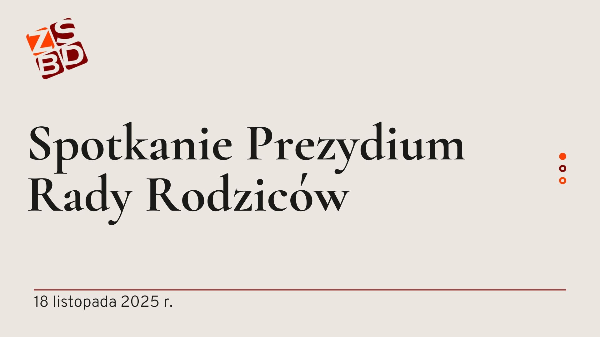 Uprzejmie informujemy, że najbliższe spotkanie Prezydium Rady Rodziców odbędzie się 18 listopada 2025 r. o godzinie 17:30.
